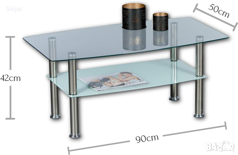 Стъклена холна маса с размери 90 x 42 x 50 cm (Ш x В x Д).
