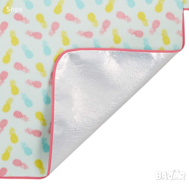 Одеялото за пикник е издръжливо и е изработено от 100% полиестер с гъбен пълнеж и фолио с алуминиево покритие. Тяхната водоустойчива и пясъчноустойчива основа може да се използва върху мокри или мокри повърхности, което ги прави много добър избор за плаж, парк, басейн или къмпинг.