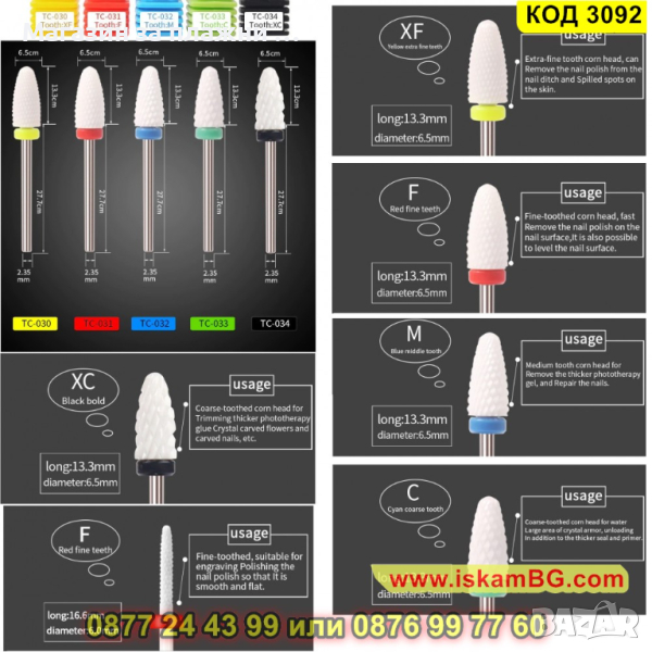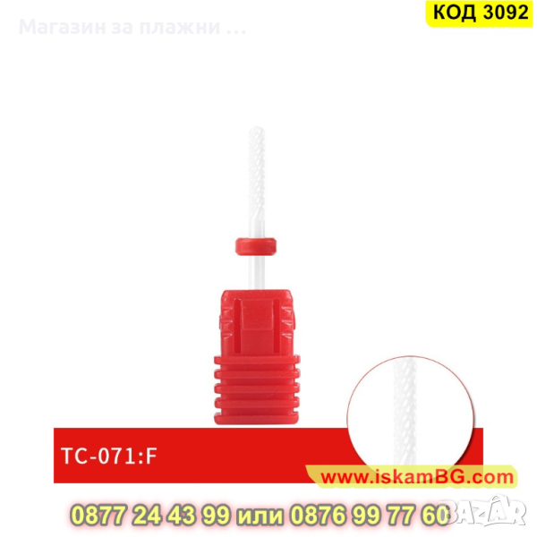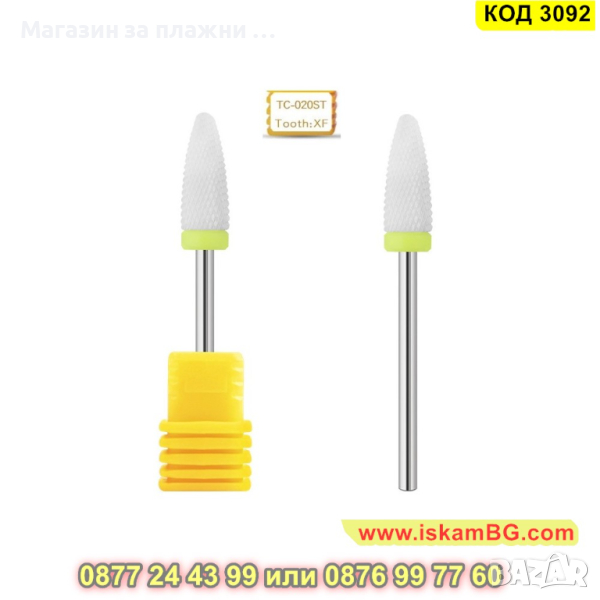 Керамичната глава може безопасно да се стерилизира и дезинфекцира. Универсалният диаметър на шпиндела го прави подходящ за всички електрически пили за нокти с накрайници тип "завъртане и заключване"