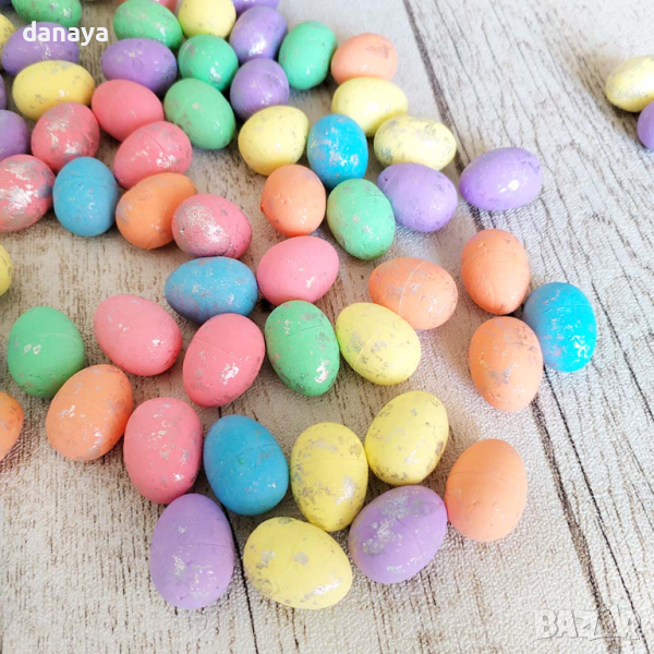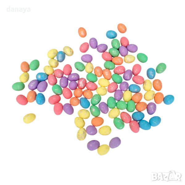 4607 Мини цветни яйца за декорация с блестящи частици, 100 броя → Обява 44822403