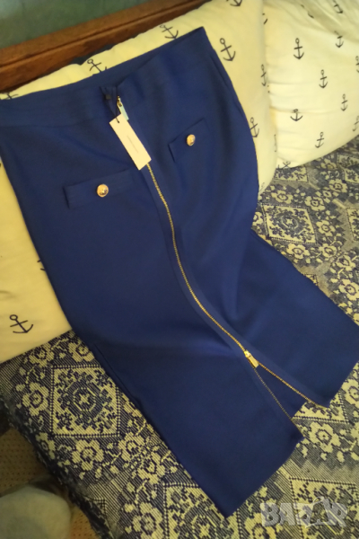 Страхотна пола на известната марка ,цвета е като на снимките златни елементи .По етикет е Л състава е полиестър и еластант ,не се мачка ципа се разтваря .Дължина 82см талия 86 см .стой по тялото ( но на мен ми идва широка в кръста затова я продавам ).КРАЙНА ЦЕНА БЕЗ БАРТЕРИ поради зачестили злоупотреби не изпращам със проба