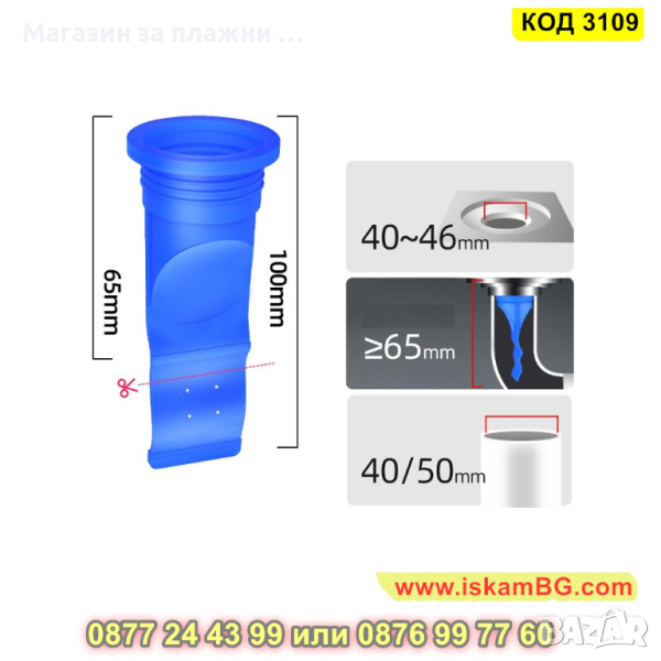 Подходящ за сифони с вътрешен отвор на сифона от 4 до 4.6см