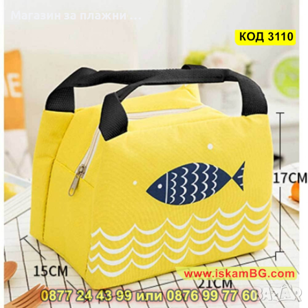 Термо чанта за храна за училище, за детска кухня - цвят жълт с рибка - КОД 3110