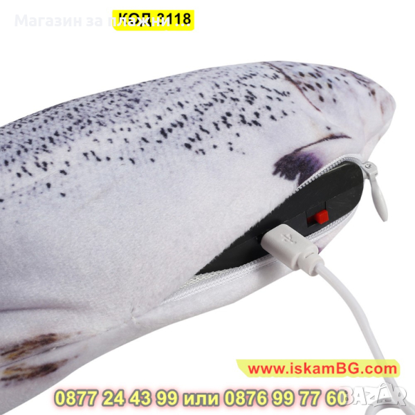 USB зареждане! Без повече купуване на нови батерии. Намира се вътре в рибката и се скрива със специален цип.