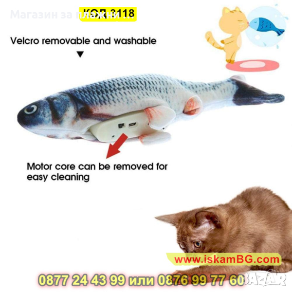 Има двигател за разпознаване на движение отвътре – мърда се точно като истинска риба при докосване. Спира се, когато остане сама! Това я прави изключително любопитна играчка за котките!