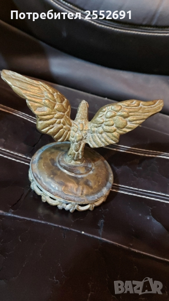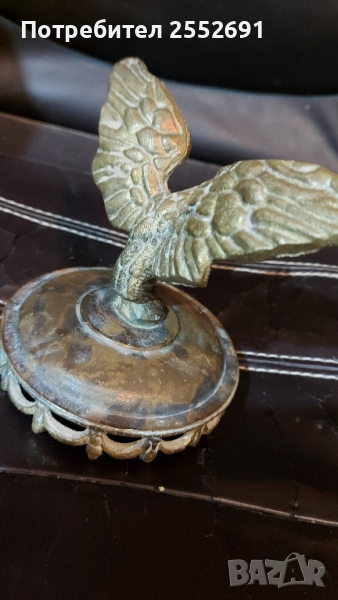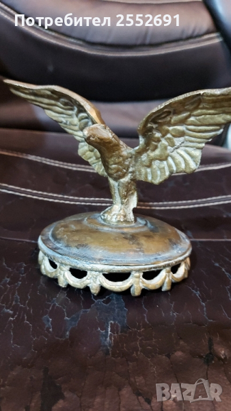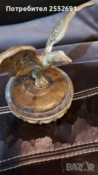 Старинна, масивна,бронзова фигура на орел върху поставка. Размери- 12/18,5/11см Диаметър на основата- 11см.