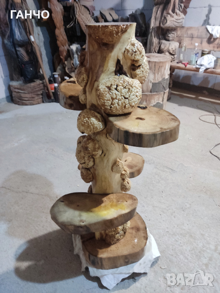 дърво, използвал съм продуктите на Бохимит. Височина 1м. за 5 саксии.Вижте и другите
