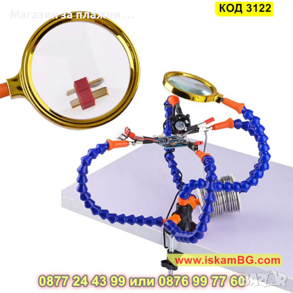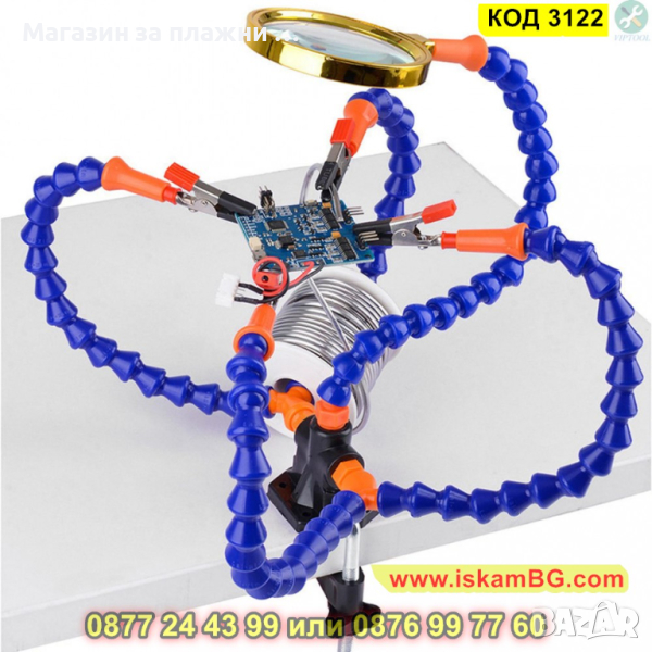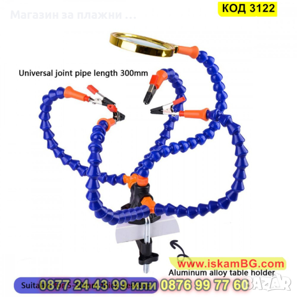 ПРЕДЛАГАМЕ 2 МОДЕЛА: Комплект 1 включва: 4 броя гъвкави рамена + 4бр. щипки + 1бр. стяга и Комплект 2, който включва: 5 броя гъвкави рамена + 4 броя щипки + 1бр. лупа с увеличение 8х