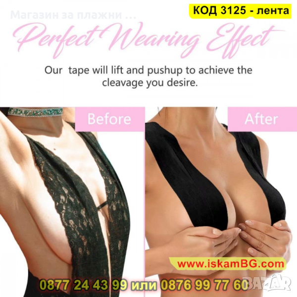 Оформя и повдига бюста, залепва се стабилно върху кожата, без да причинява алергии.