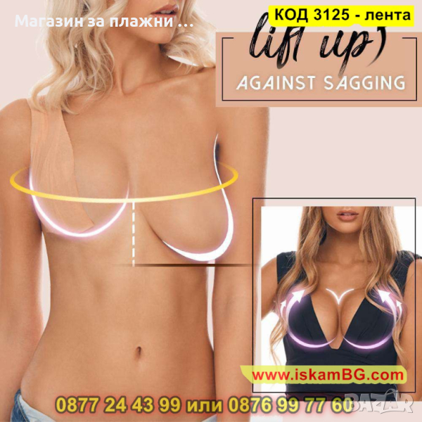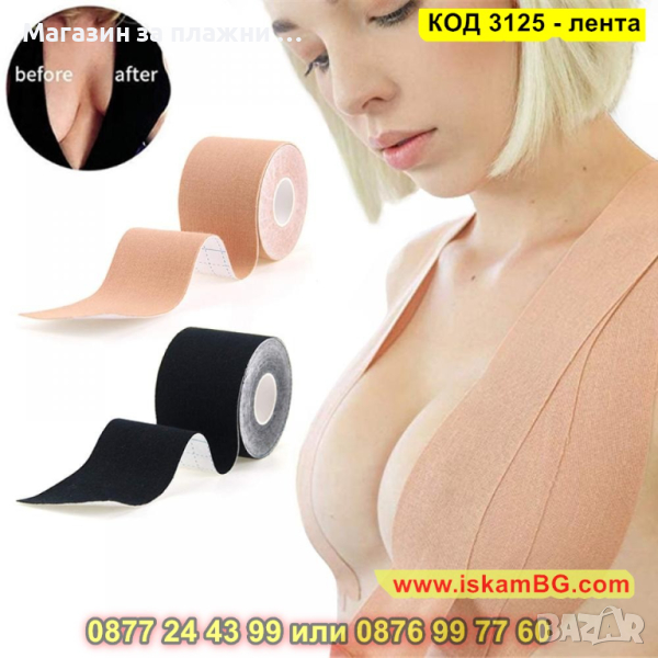 Водоустойчива самозалепваща памучна лента за повдигане и оформяне на бюста.