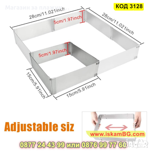 Регулируема квадратна/ правоъгълна форма за торта - 1 бр.