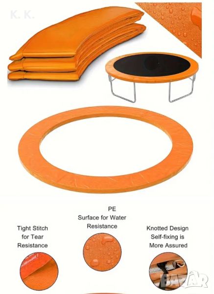 Покривало за пружини за Батут 305 см. 366см, 244см 1 бр. -70 лв.НОВ внос от Германия. Налични още 2 бр. само оранжеви на 80 лв. Има и други нови модели като разновидност с различни цветове,които са по плътни и с по мека промазка, те са на 90 лв. и едно черно, което не е снимано. Има снимки на останалите