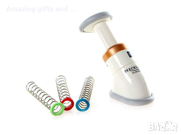 Neckline Slimmer е ефективен уред за стягане на кожата на шията и укрепване на мускулите на брадичката и челюстта. След първия месец на използване на Neckline Slimmer ще забележите видимо подобрение във формата на лицето си. Просто го използвайте няколко пъти на ден за 2 минути!