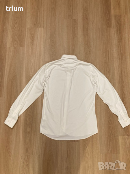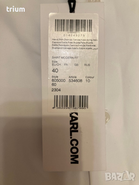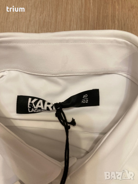 Мъжка риза Karl Lagerfeld, бял цвят, модерна кройка, много удобна и еластична, размер EU 40. По етикет 40/102. Нова, с етикет, подходяща и за подарък. Купена за 350 лева.