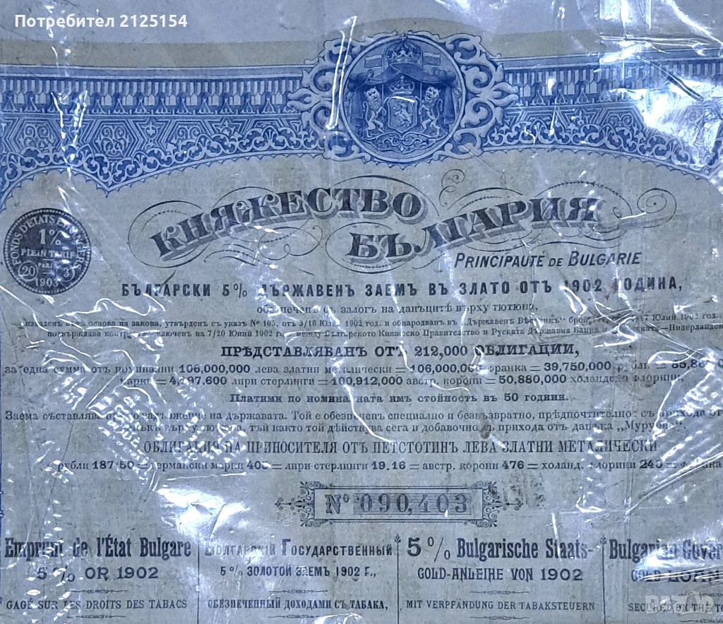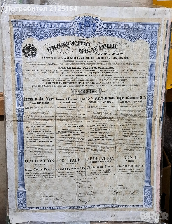 Облигация Княжество България -500 лв,1902 г. → Обява 44827492