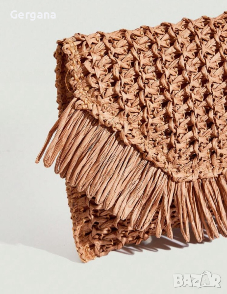 Изработена от ефектно изплетена хартиена рафия, в свеж цвят подходящ както за пролетта така и за предстоящия летен сезон (за плаж или в комбинация с тоалета ви през вечерта).