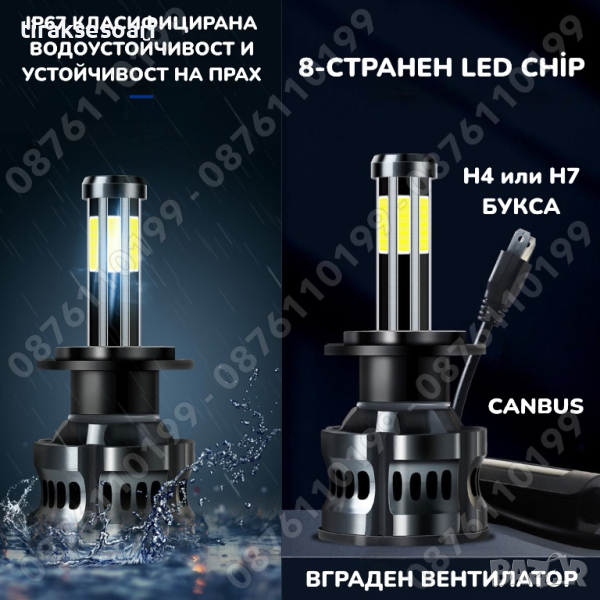 2 БРОЯ 360° LED Диодни крушки – H7 300W 12V 24V
