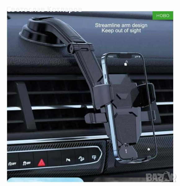 • Универсална стойка за телефон с вакуум и удължено рамо, за по-добра видимост.