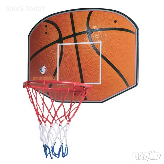 Монтирано на стена баскетболно табло с метални скоби и винтове (включени). Има метална джанта 31см и мрежа. Пакетът съдържа 17 см топка и малка помпа за надуване (пластмасовата игла на помпата е в буталото).