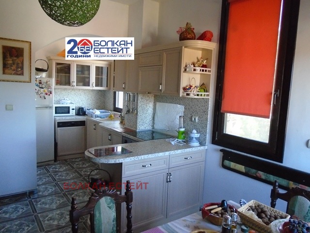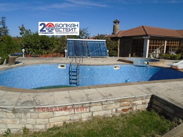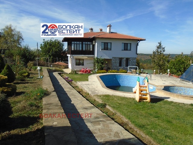Агенция за недвижими имоти БОЛКАН ЕСТЕЙТ има удоволствието да ви предложи луксозна двуетажна къща за продажба в с. Арбанаси, община Велико Търново. Къщата е със застроена площ от 274 кв.м./ 137 кв.м. на етаж/, на два етажа, като на първия етаж има голям салон с гостна, кухня с трапезария, една спалня и баня. По вътрешни стълби се стига до втория етаж, където има просторна всекидневна, четири луксозни спални, едната от които е детска, две бани, едната от които е с вана. В приземния етаж е монтирана модерна сауна. Къщата е с локално парно с комбиниран котел на пелети и ток. В цялата къща са монтирани 6 бр. климатици. В непосредствена близост до къщата е басейнът от 50 куб.м. със слънчеви отоплители, с водоскок и детски малък басейн. В близост до него е атрактивна механа с кухня и камина с площ от 65кв.м. Има и гараж за две коли. Дворното място е от 1570 кв.м, със съвременно озеленяване и панорама към Арбанаси.