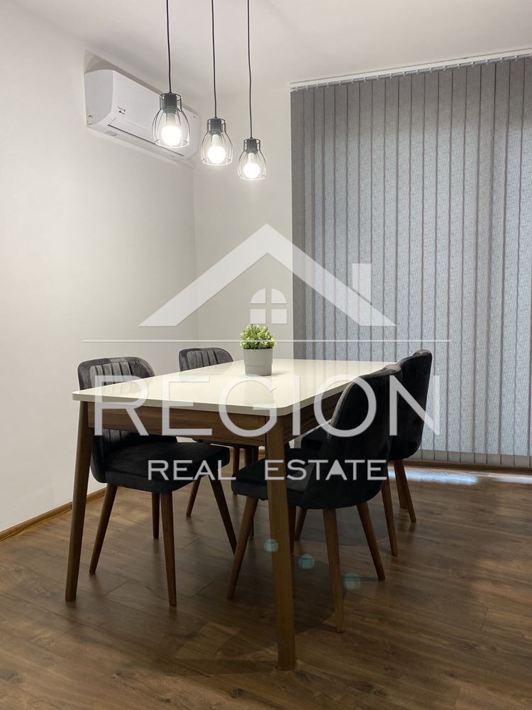 Агенция за недвижими имоти Регион, предлага на Вашето внимание напълно обзаведен и обудван двустаен апартамент в района на Центъра в гр.Варна. Състои се от дневна с кухненска част напълно оборудвана с всичко необходимо за едно живеене, вградени и висок клас ел уреди, спалня,тераса, баня-тоалет. Жилището се отдава за дългосрочно. Намира се в близост до автобусни спирки, магазини, училища, детски площадки и др. Подходящ за сам или двойка. При интерес обадете се на посочения телефон.