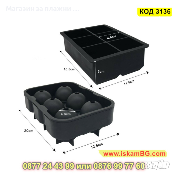 Размери на силиконовата форма за ледчета с форма на топка: 18 х 12.5 х 5 см