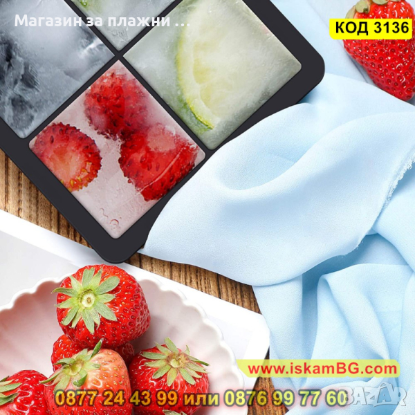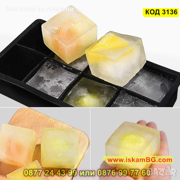 Размери на силиконовата форма за ледчета с форма на кубче: 16.5 х 11.5 х 5 см.