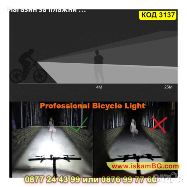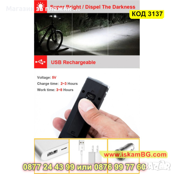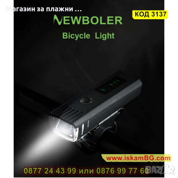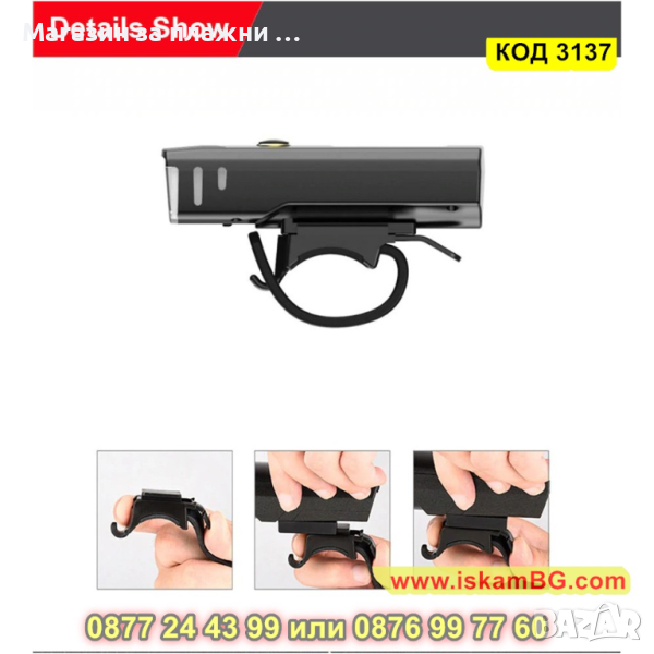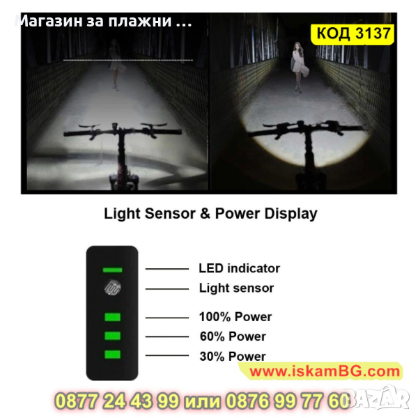Лед фар за велосипед със сензор за светлина - 1 бр.