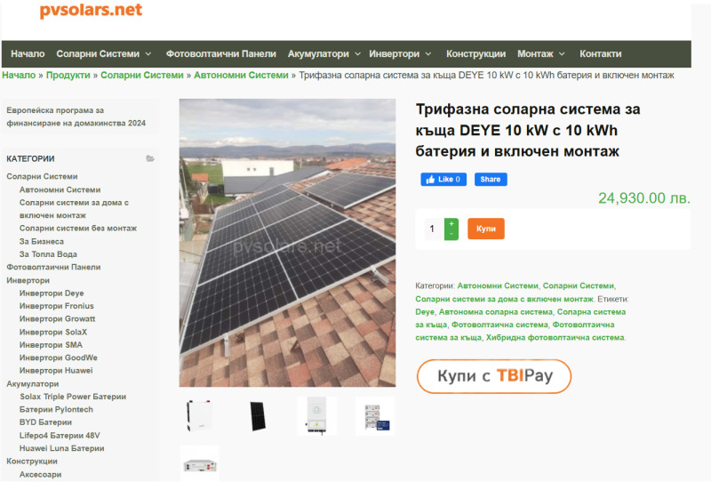 - 10 kW фотоволтаична система (инвертор и батерии Deye) с постоянен мониторинг, която гарантира почти нулеви разходи за ток и пълна енергийна независимост;