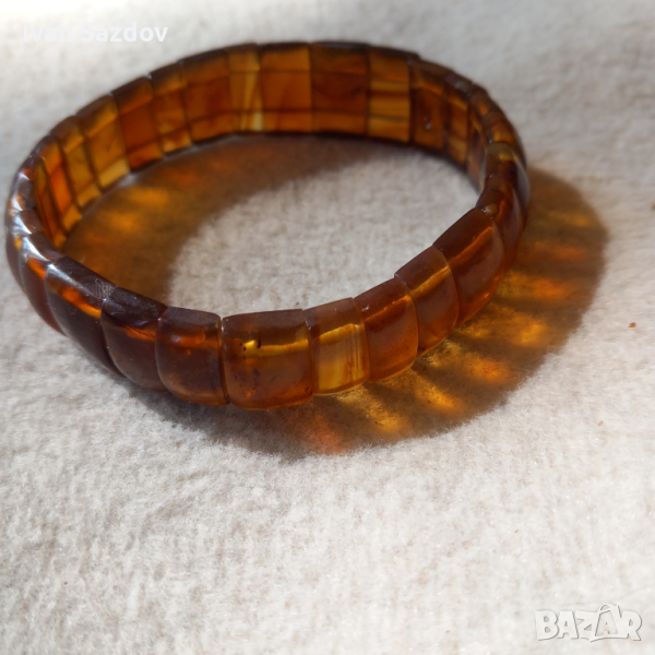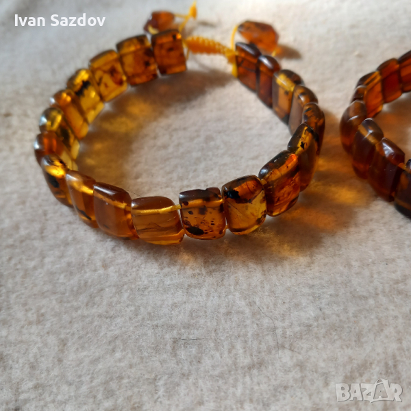 Кехлибарени гривни, изработени от подбрани образци Мианмарски кехлибар плочки, на ластична корда или със корекция на дължината