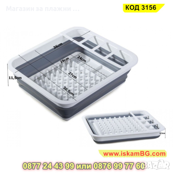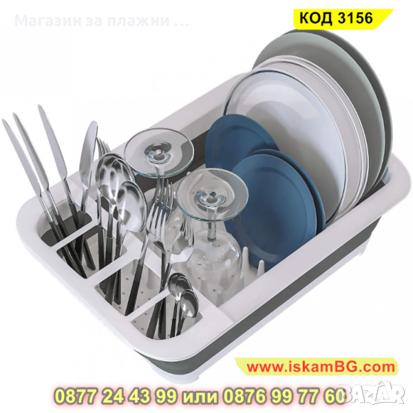 Практичният сгъваем сушилник за съдове е незаменимо оборудване за всяка кухня. Сушилникът, поради функционалната си сгъваема конструкция е идеален за пътувания или къмпинг. Може да бъде разглобен за няколко секунди и е напълно готов за употреба.