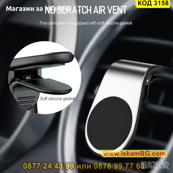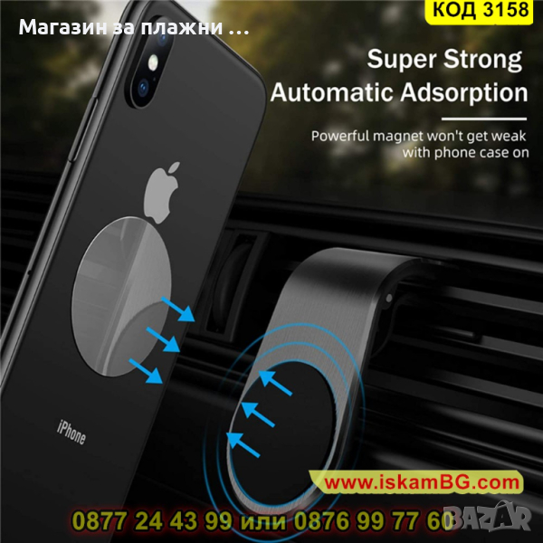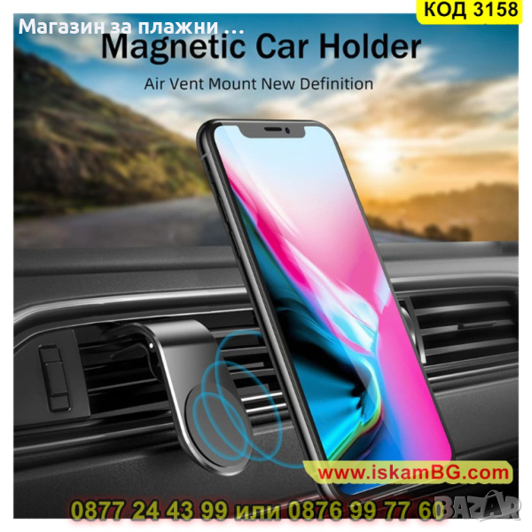 Магнитна стойка за телефон за автомобилна вентилационна решетка - 1бр.