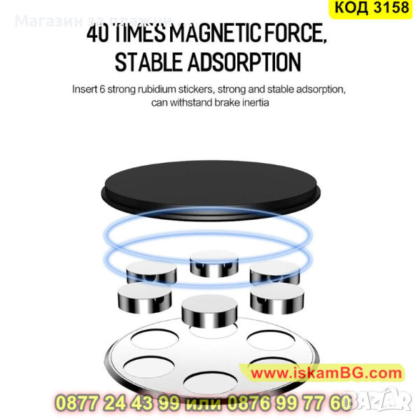Съвместимост: всеки телефон с залепена метална плоча или подходящ калъф