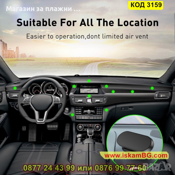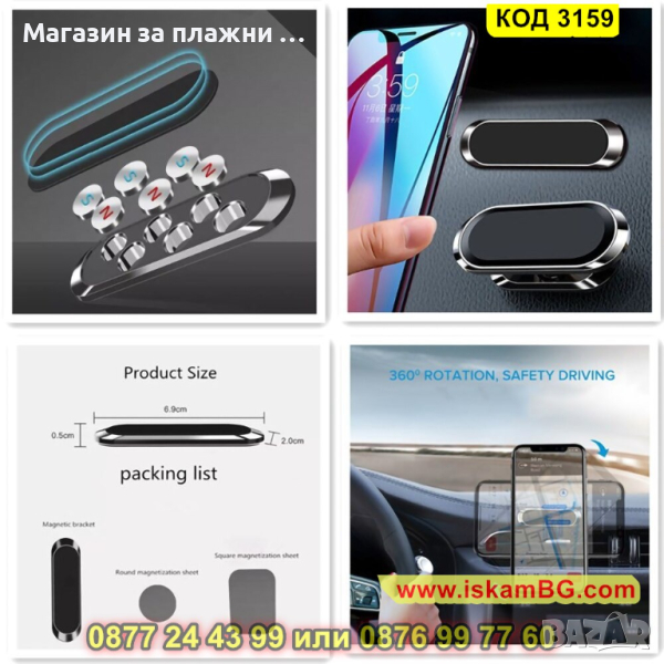 Тази магнитна поставка за телефон се поставя на таблото на автомобила и служи за закрепяне на смартфони, ключове и други метални предмети. Може да бъде използвана като отличен помощник у дома, в офиса или в магазина.