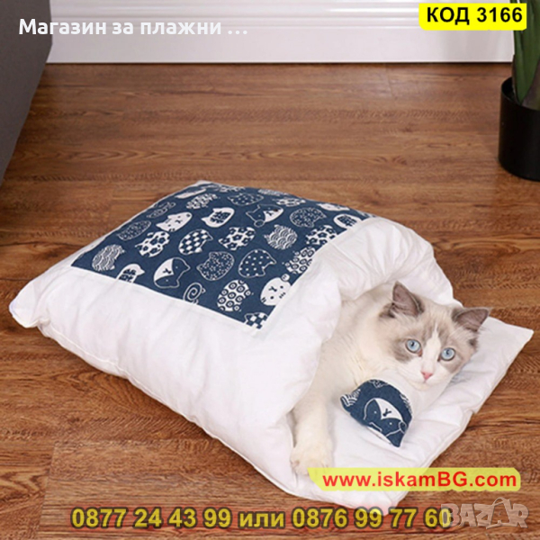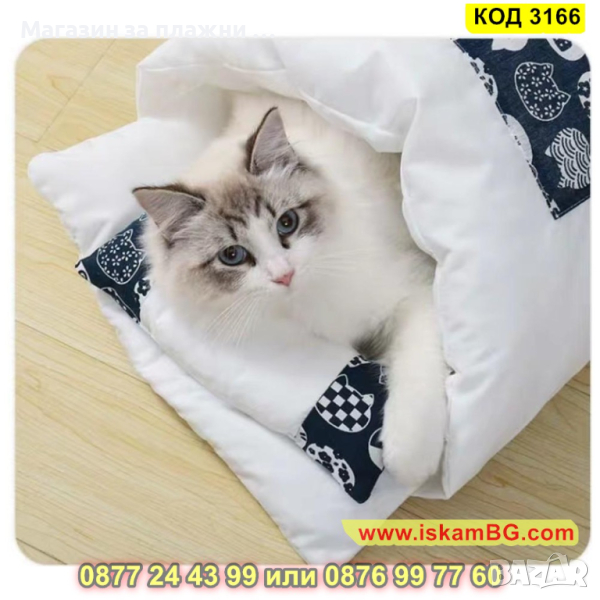 Полузатворен дизайн, дишащо и удобно топло легло тип спален чувал за котки.