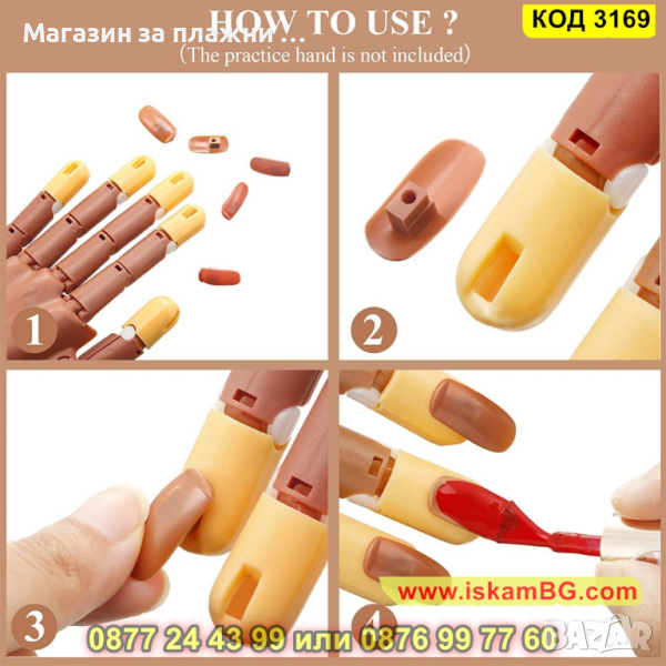 Комплект от 100 броя нокти за тренировъчна ръка - КОД 3169