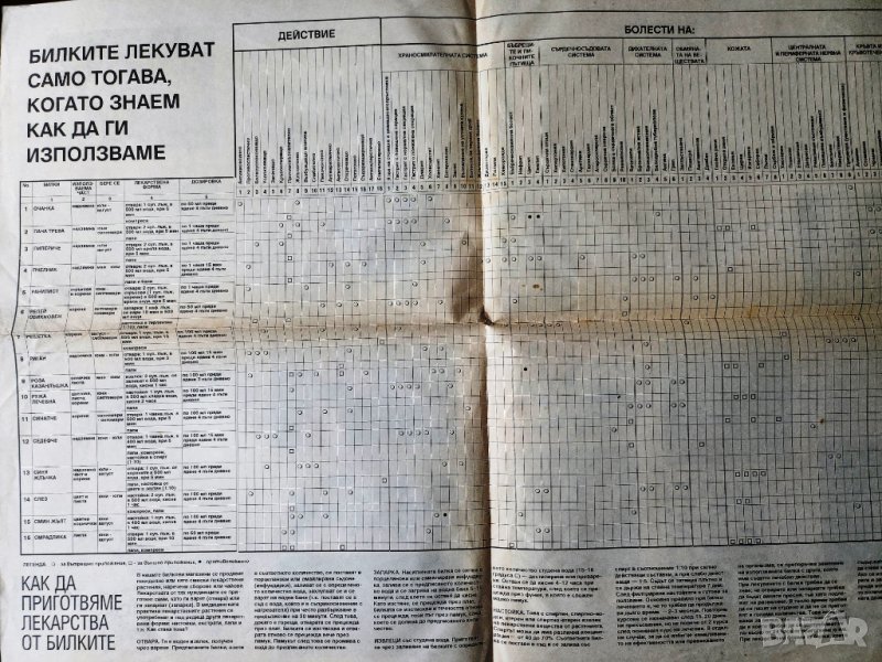 С цветни илюстрации на полезните лечебни растения и таблици на полезните им свойства, приготовляване и др.