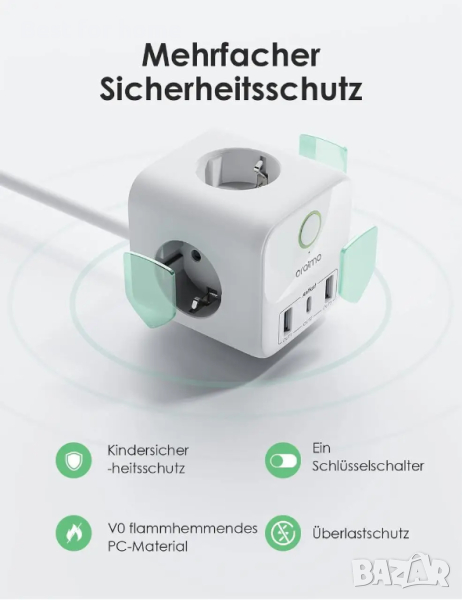 Многопортово устройство Oraimo OWS-Е342, 20 W. Зареждайте 6 устройства едновременно