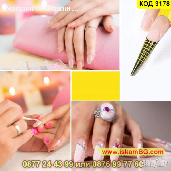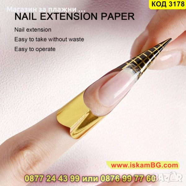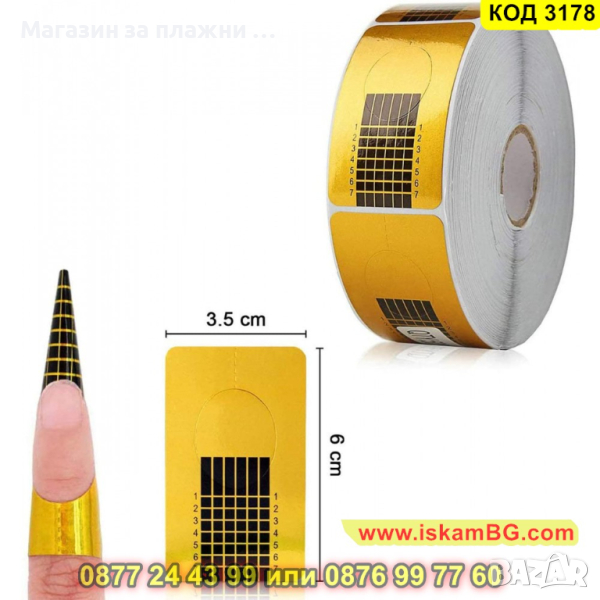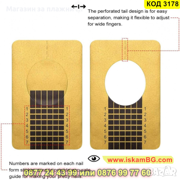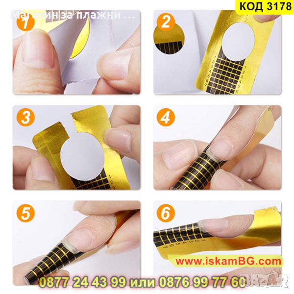 Формата трябва да се постави под свободния ръб на естествения нокът, да се огъне и да се залепи под пръста, така че да няма празнина. След това върху шаблона се нанася гелът от кожичките до свободния ръб.