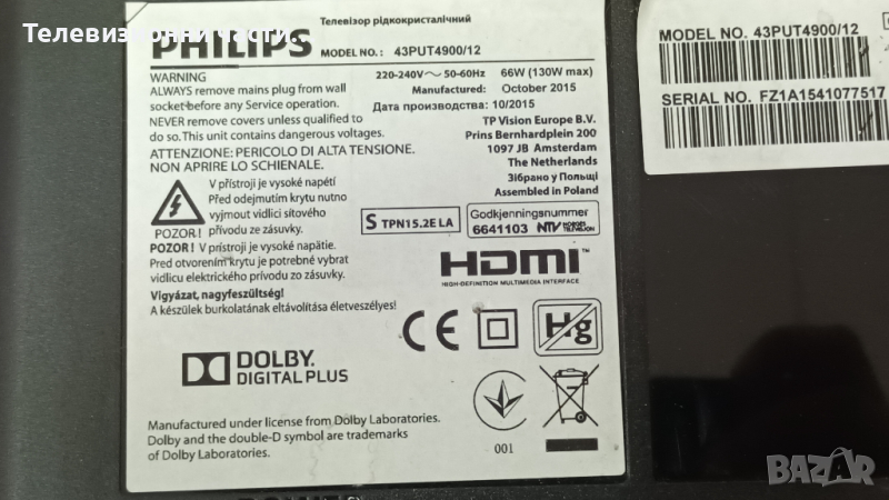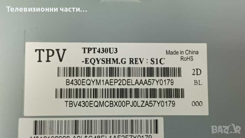 Philips 43PUT4900/12 със счупен екран.Панел TPT430U3-EQYSHM.G REV:S1C