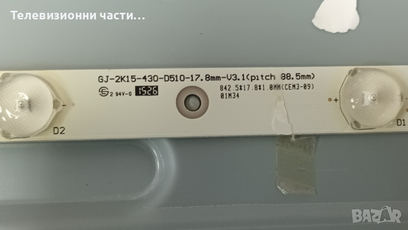 LED Подсветка GJ-2K15-430-D510-17.8mm-V3.1(pitch 88.5mm) 5 ленти по 10 диода - 10.23 евро / 20лв за комплекта