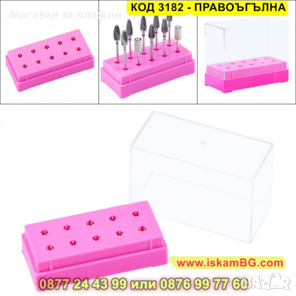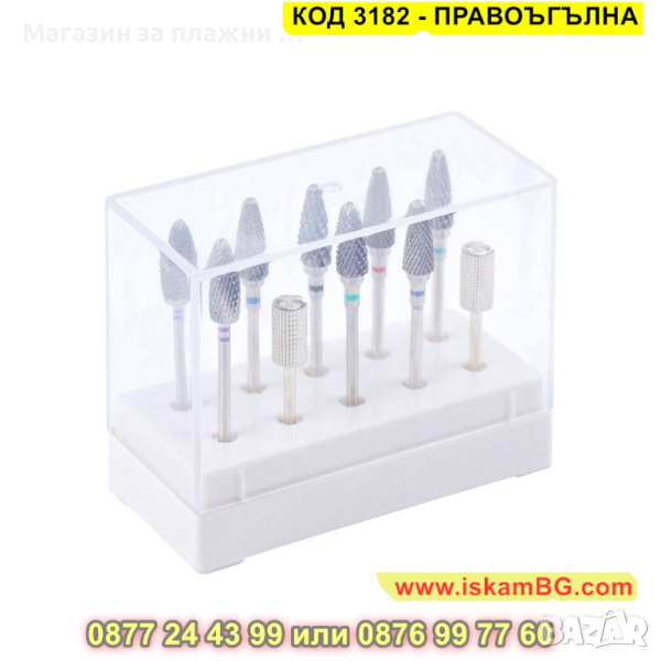 Стойка за 10 броя накрайници за електрическа пила за нокти - КОД 3182 - ПРАВОЪГЪЛНА