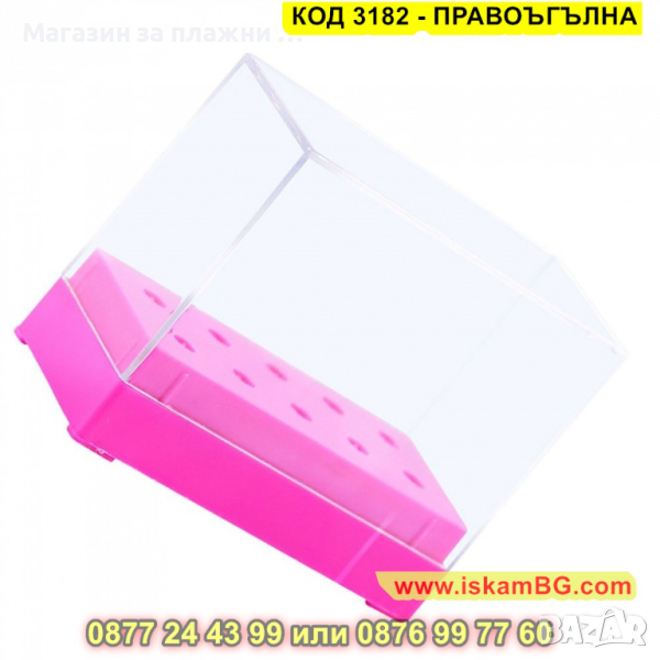 Правоъгълна стойка за 10 броя накрайници за ел. пила за нокти с капак - 1 брой