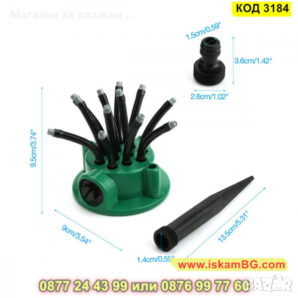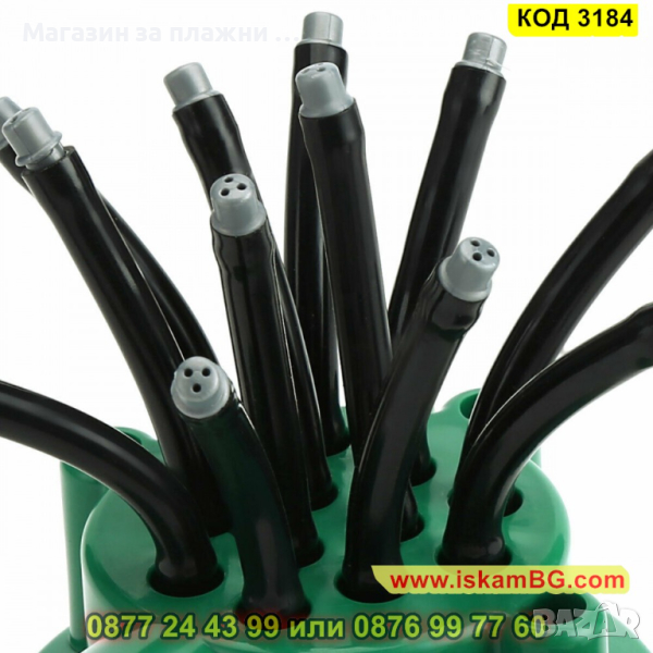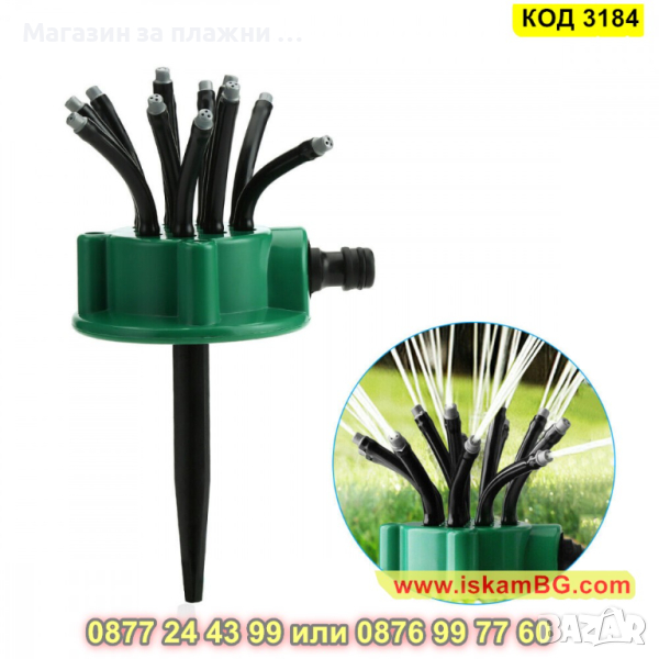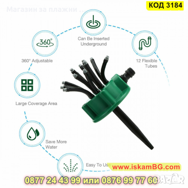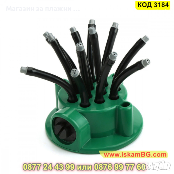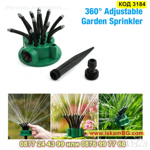 Мултифункционалната градинска пръскачка 360 градуса е иновативен аксесоар за поливане на градини, дворове и други зелени площи. Тя е предназначена да осигури равномерно поливане на големи площи и да покрие различни зони на градината.