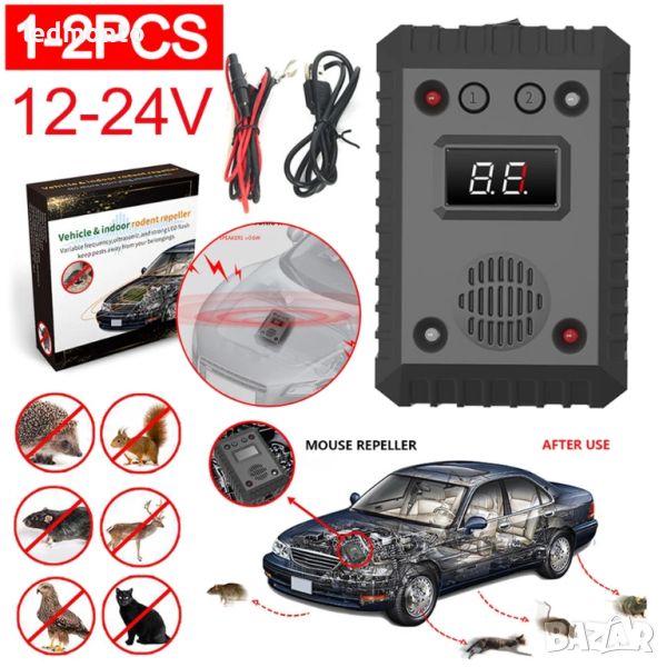 * **Ефективно въздействие срещу различни животни:** Устройството отблъсква различни животни, като ги държи далеч от вашия автомобил, складове, кухни и помещения за съхранение.