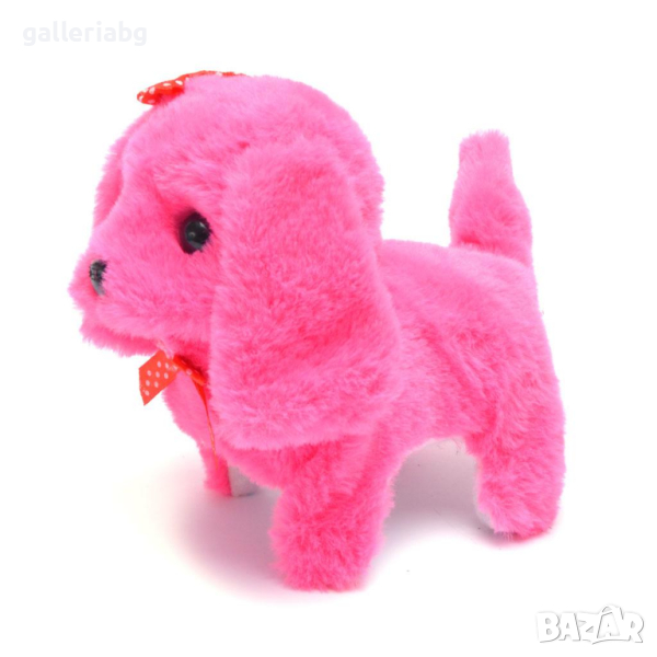 Плюшено, лаещо кученце с панделка.