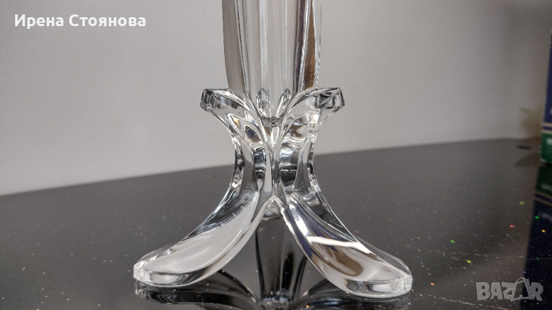 Кристална ваза d'Arques France. Височина 22 см. Нова, в оригинална опаковка. Има лека забележка на основа, усеща се на допир, не се забелязва и не пречи за употреба. Цена 48 лв.