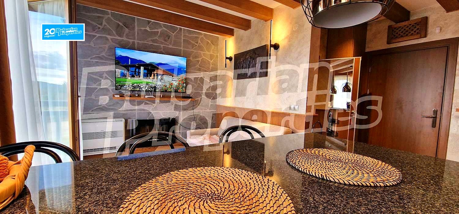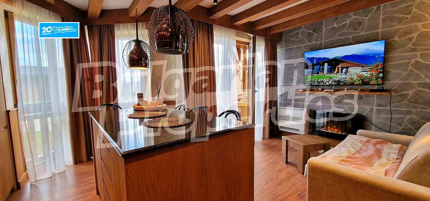 Предлагаме на вашето внимание чисто нов апартамент с директна топла връзка до СПА-то и всички ресторанти в 5-звездния апарт-хотел Пирин Голф & Кънтри Клуб / Pirin Golf & Country Club с модерни съоръжения - игрища за футбол, волейбол, детски площадки, поляни, голф игрище, които се поддържат в отлично състояние и създават уют и спокойствие на обитателите, както и работеща програма за отдаване на имотите под наем.