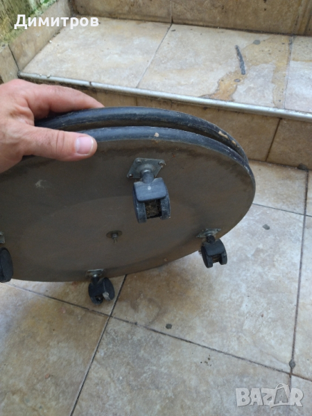 Въртяща стойка с колелца и въртящ механизъм с размери диаметър 40см височина с колелцата 9см а само стойката 5см по 15лв два броя
