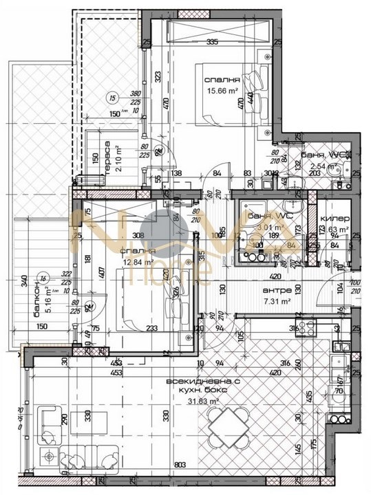 Всички апартаменти в комлекса са с правилни форми и нормални за живеене крадратури.
